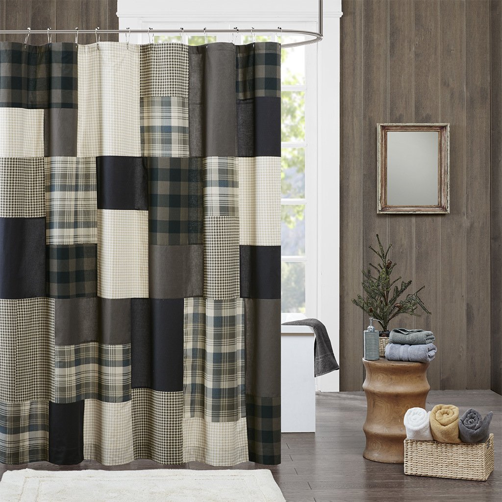 Create a striking look in your space with the Woolrich Winter Hills Collection. This 144 thread count light weight cotton shower curtain features several different plaids and solids pieced together for the perfect balance in this lodge look.