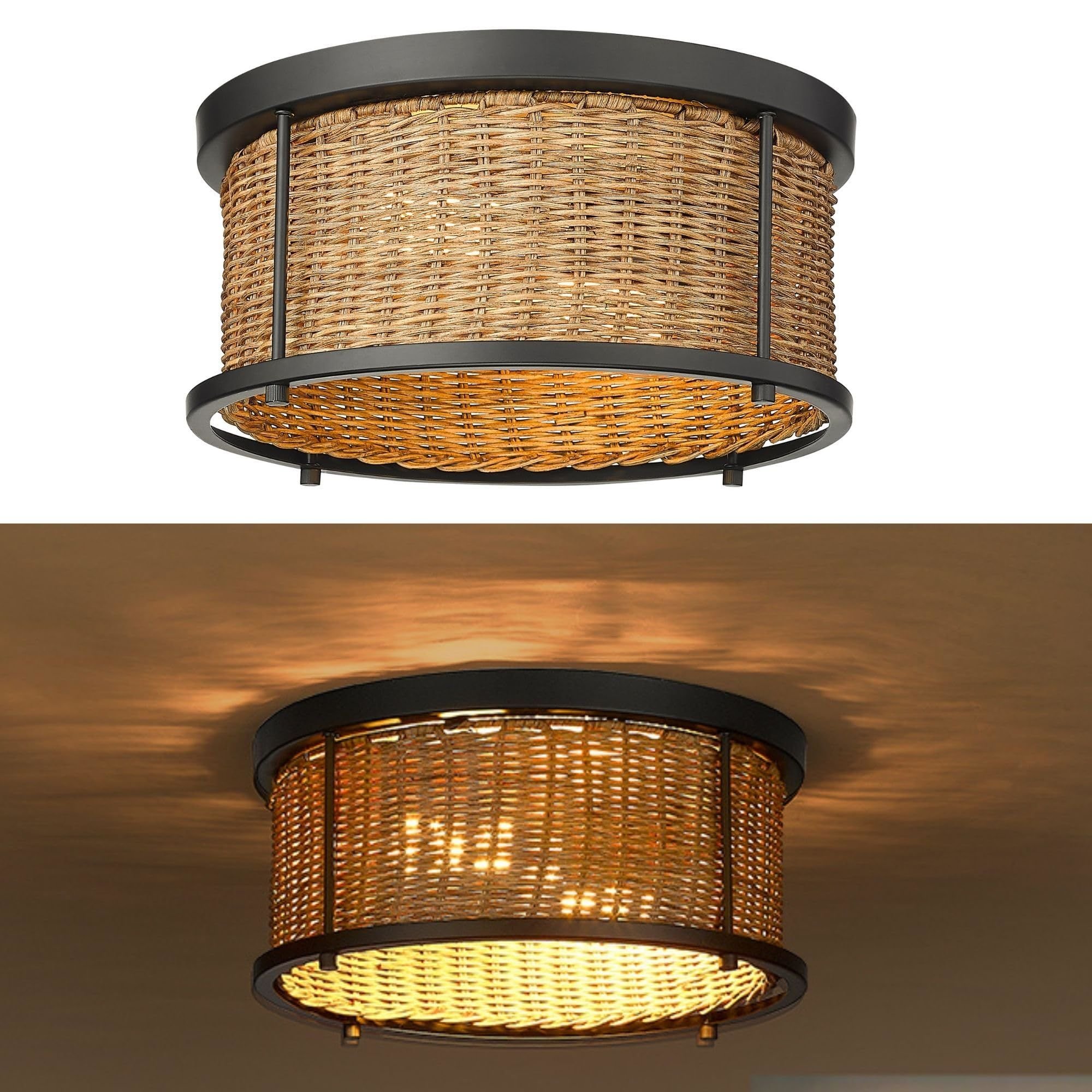 2-Light Natural Bohemian Rattan Flush Mount Ceiling Light 2-Light Natural Bohemian Rattan Flush Mount Ceiling Light 2-Light Natural Bohemian Rattan Flush Mount Ceiling Light