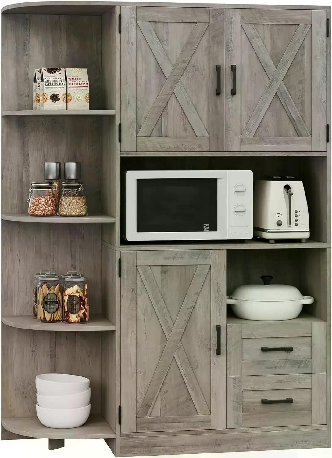 • UPGRADE YOUR KITCHEN STORAGE: Featuring ample compartments, three cupboards each with adjustable shelf, a 4-tier external shelf and 2 easy-glide drawers, this functional buffet cabinet provides both open areas and hidden spaces to keep all your kitchen appliances and cooking accessories well organized