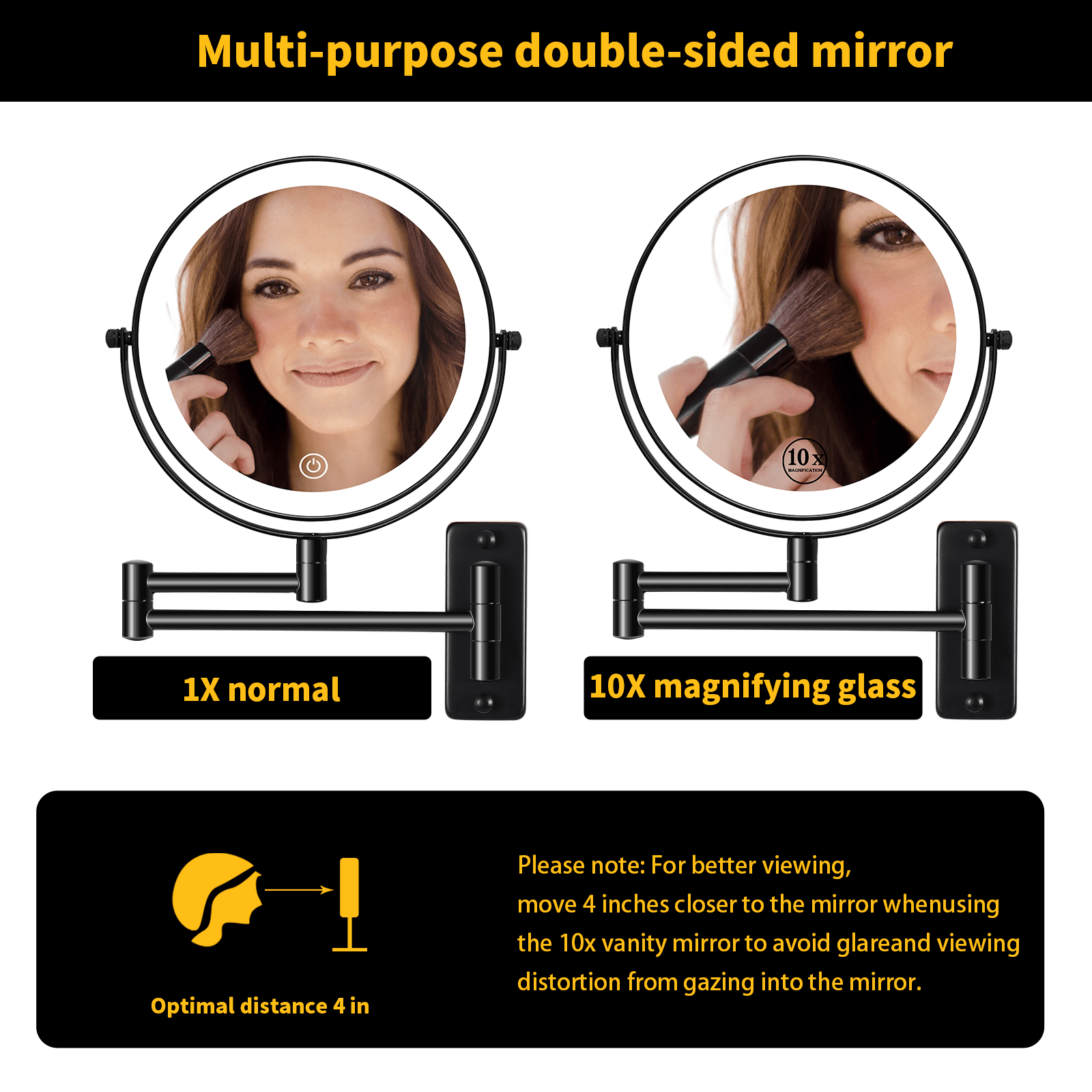 Home > 8 Inch Wall-Mounted Makeup Mirror, Double Sided 1x/10x Magnifying Makeup Mirror, 3 Colour Lights Touch Screen Dimmable Bathroom Mirror