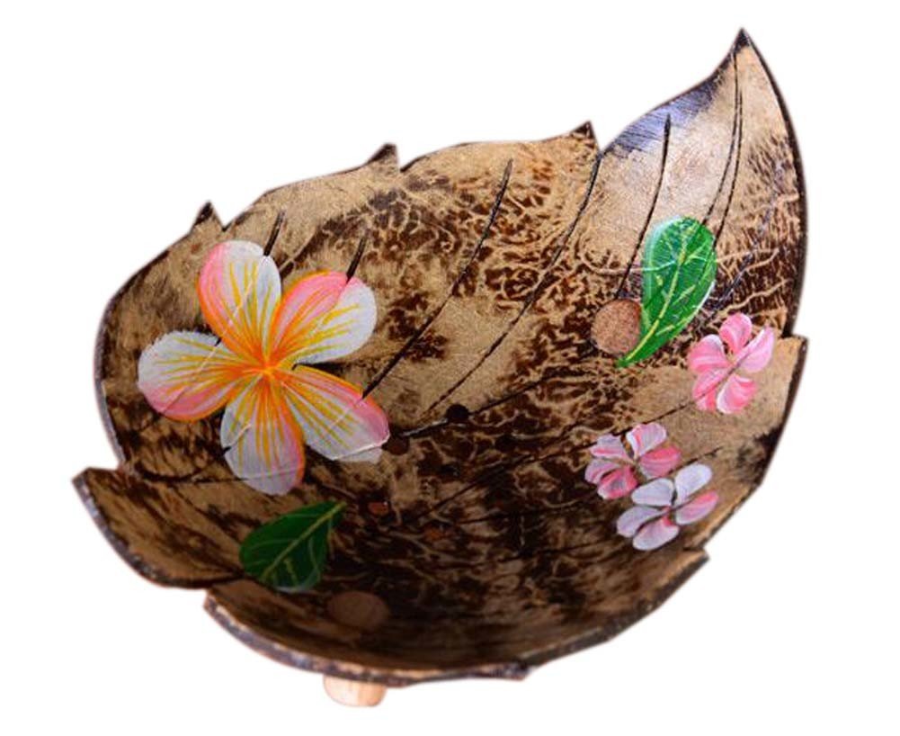Coconut Shells Leaf Shape Soap Dish Hand-painted Flowers Jewelry Holder