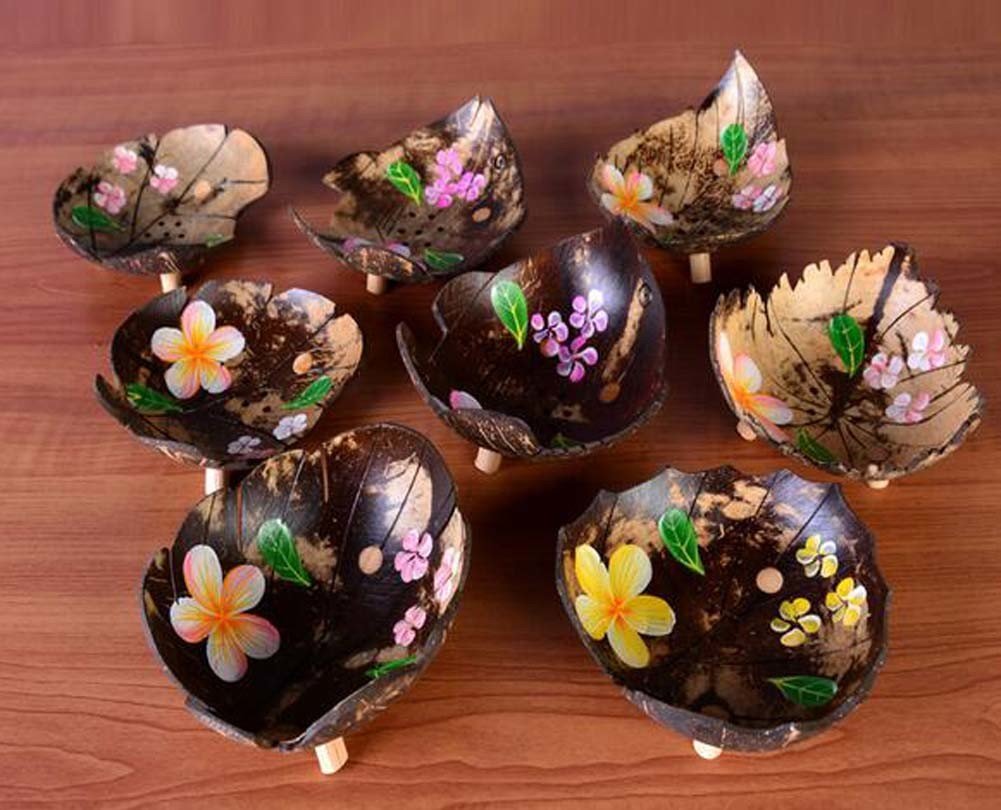 Coconut Shells Leaf Shape Soap Dish Hand-painted Flowers Jewelry Holder Coconut Shells Leaf Shape Soap Dish Hand-painted Flowers Jewelry Holder
