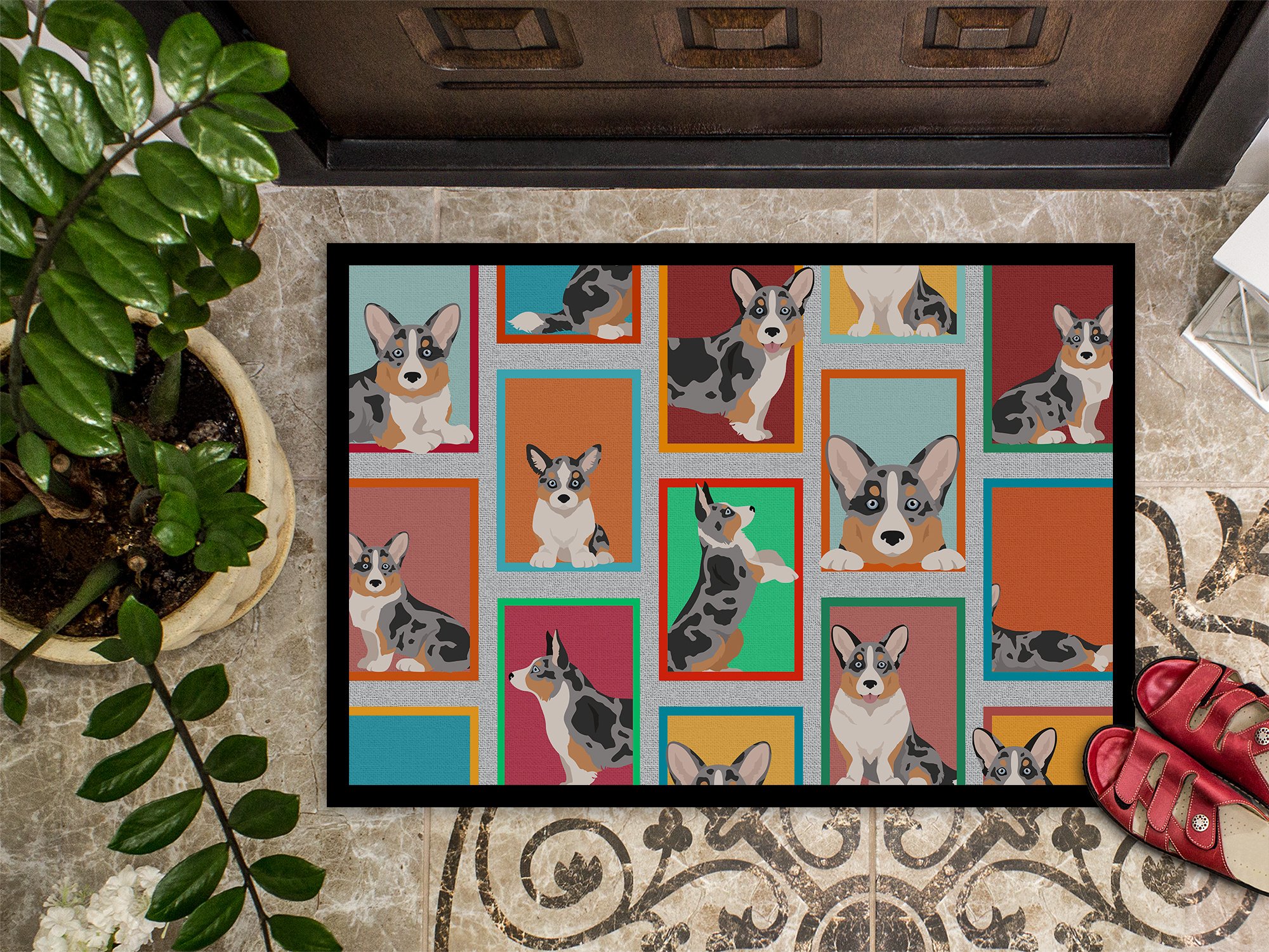 Home > Lots of Blue Merle Welsh Cardigan Corgi Doormat Front Door Mat Indoor Outdoor Rugs for Entryway, Non Slip Washable Low Pile, 24H X 36W