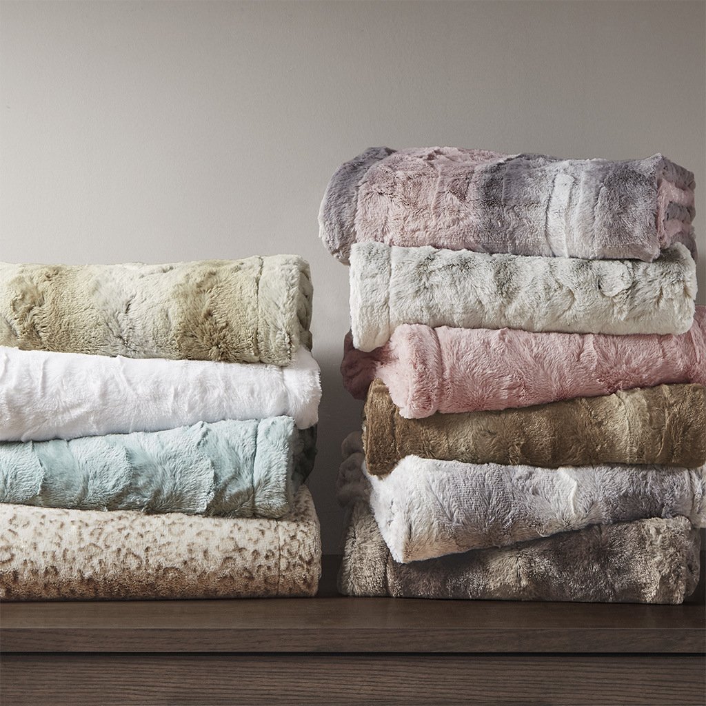 The Madison Park Zuri oversized throw features a luxuriously soft faux fur and reverses to a solid faux mink. This faux fur throw is the perfect modern update and adds a glamorous accent to your home. This throw is machine washable for easy care and OEKO-TEX certified, meaning it does not contain any harmful substances or chemicals to ensure quality comfort and wellness. Items in the set may come in a rolled or compressed packaging, which will need to be fluffed up or steam ironed before use to remove wrinkles.