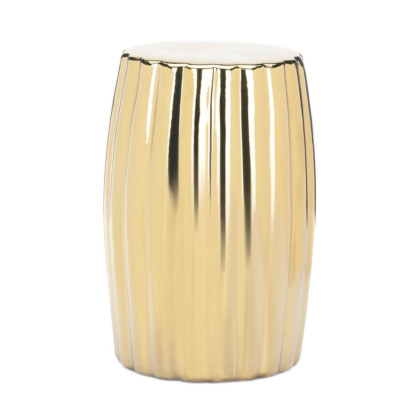 • Add a hint of shine to your décor with this decorative gold stool. Made from durable ceramic material, this gold stool can be displayed on its own or used as a modern plant stand. The sleek gold finish and smooth surface will add a bold contemporary look to your living room, office or bedroom space. Maximum weight limit: 220 lbs.
