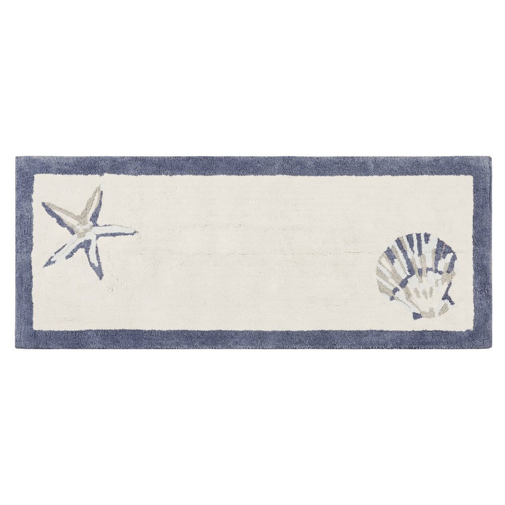 The Madison Park Bayside Cotton Tufted Runner adds the perfect coastal touch to your bathroom decor. Made from 100% cotton, this tufted runner features fun shell and seaside designs in lush blue and taupe hues, for a warm and inviting look. The cut and loop pile technique creates a soft textured feel to provide you with the utmost comfort. Machine washable for easy care, this cotton tufted runner offers the perfect accent for your beach retreat. Complete the collection with coordinate shower curtain and towels, available and sold separately.