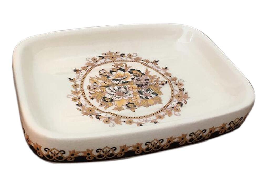 Royal Style Color Painted Floral Ceramic Soap Dish Rectangle Jewelry Plate