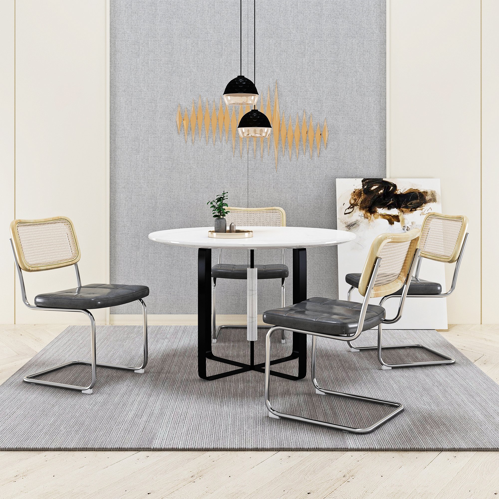3.The seat cushion of the chairs is made of high-quality PU leather, which provides a sleek and easy-to-clean surface for sitting.