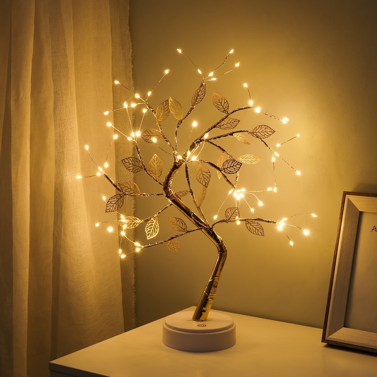 UNIQUE DESIGN: The natural tree shape will add vitality to your home. There are 72 small LED lights with warm white brilliance; which perfectly creates a peaceful and warm atmosphere in your room. TOUCH BUTTON FUNCTION: It has a simple touch on/off function; whether it is elderly or children; the operation is very easy. In addition; the light it emits is soft and not dazzling; and will not harm the eyes.